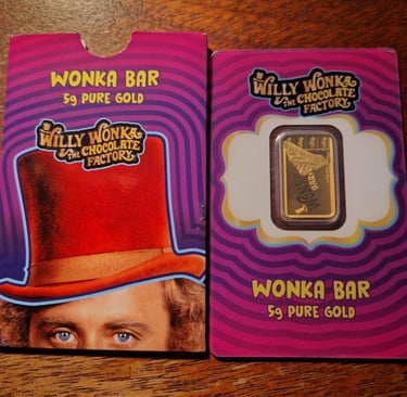 We recently picked up the Willy Wonka 5g bar of gold you see below. Luckily the owner had won it in a competition but if he had purchased it from new it was originally sold at a price approximately 150% over the value of the gold. Even luckier still for its owner, gold has done really well this year so he was in the pound seats but the hard truth of the matter that, when faced with this type of item, precious metal dealers pay no attention the marketing hype but rather value it as nothing more than what it is – in this case 5 grams of gold. We ignore glitz and the glamour and the “they are for sale on eBay for £xyz” commentary and simply pay for the metal.